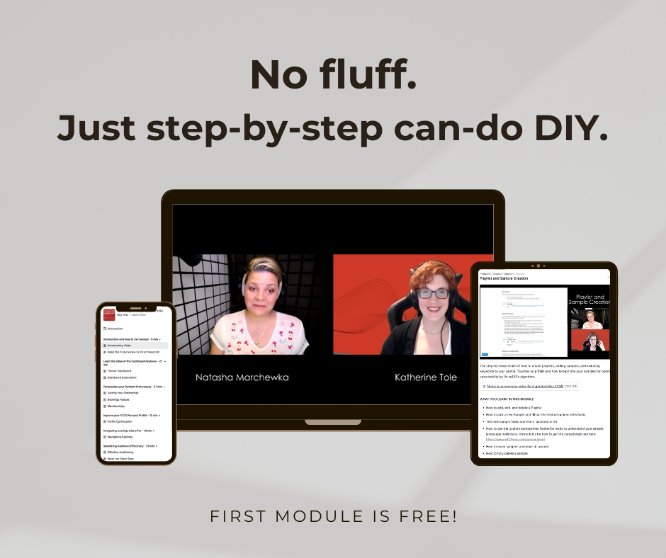 Thankfully, we are like you! We dislike DIY/self-motivated/self-paced blah blah things that you don't watch for 6 months because they seem overwhelming. When we created this course we were really focused on creating something that was relatable, step-by-step, encouraging, and actionable! You can go about changing and improving your Voice123 playlists and profile while you watch, no snoozing and "I'll do it later" allowed!